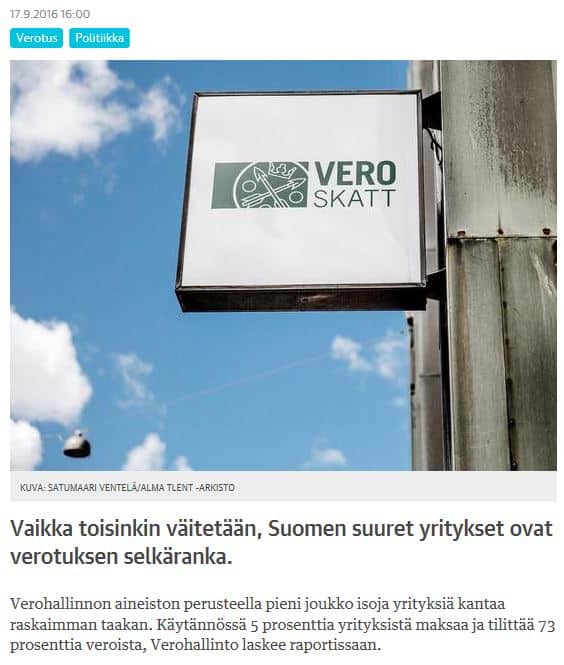 Pikaisesti voisi luulla, että suuryrityksiä verotetaan rajusti. Kysymys on kuitenkin verojen tilityksistä eli siitä, että ko. yritykset hoitavat verojen keruuta valtion ja muiden julkisyhteisöjen puolesta esimerkiksi palkkojen ennakopidätyksiä ja alv:n maksuja.