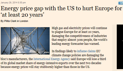 - EU:njäsenvaltiot ovat omaksuneet vihreän energia avustukset, vierastaneet ydinvoimaa ja vastustaneet liuskekaasun etsintäää, joka on vauhdittanut teollisuustuotannon renesanssia Yhdysvalloissa. Tämä on nostattanut kasvavaa vihaa teollisuudenjohtajissa, jotka sanovat, tämä on ollut kilpailukyvyn pilaamisen resepti.