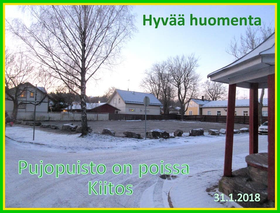 Ei olisi voinut parempaa pyytää, kuin sen, että aamuhämärissä näki ihmeen: Entisen Hovin tontin pujopuisto oli muuttunut siistiksi kivillä reunustetuksi pihaksi.