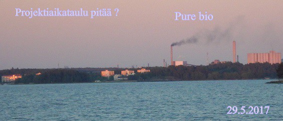 Aamuin illoin vesillä liikkuessa olemme toiveikkaasti seuranneet taivaanrantaa. Ja nyt se sitten on tapahtunut; tumma biosavu on edistyksen merkki. Uudessa kattilassa on pöhinää ja koeajot ovat olleet jo muutamia päiviä käynnissä. Syksyllä sitten lämmitellään ja puupohjaisella kaukolämmöllä.