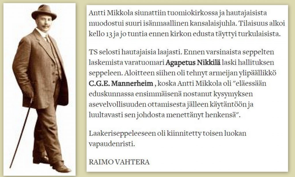 siihen oli tehnyt armeijan ylipäällikkö C.G.E. Mannerheim , koska Antti Mikkola