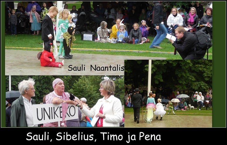 Ja lasten pukukilpailussa ykkönen oli Sauli Naantalista ja kakkonen oli Sibelius sävellyksineen ja muut julkkikset olivat nykyinen unikeko Koivusalon Timo ja entinen Arajärven Pena.