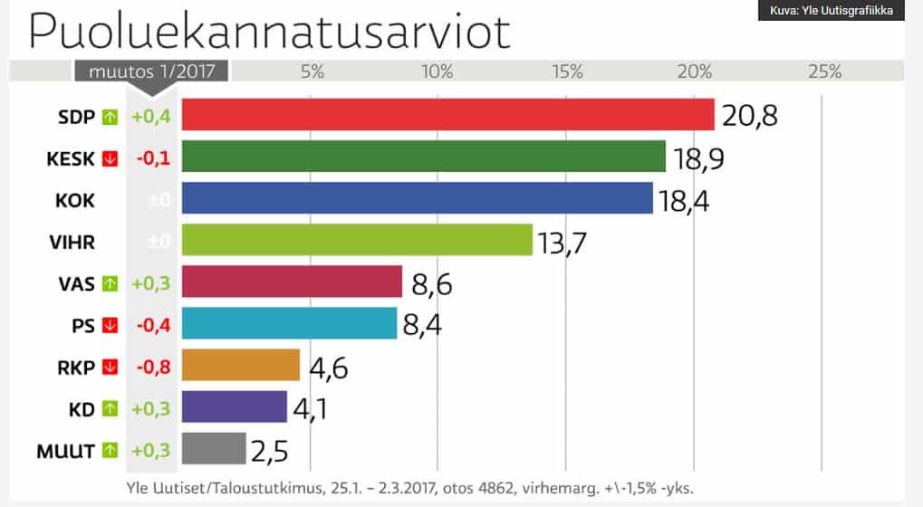 Keskusta ja Kokoomus ovat tasoissa ja demarit johdossa, mutta muistamme, että vaikka olemmekin työväenpuoleue, niin se ei ikävä kyllä tarkoita vaalityötä. Tässä tarvitaan asennemuutosta.