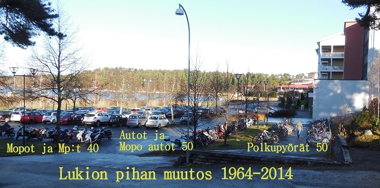 Lukion piha on nykyisin toisella, siis meren puolella ja se on myös