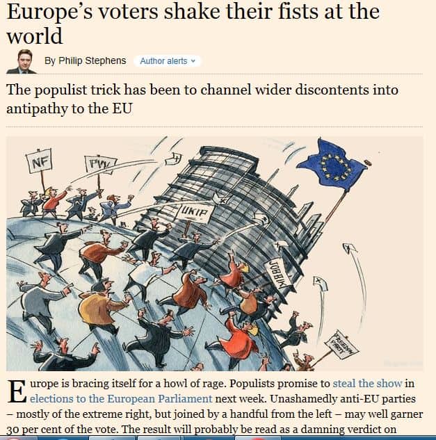 tunnelmissa ei mikään estä antamasta tuntuvaa potkua Brysselille. Philip Stephens FT 15.5.2014