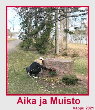 Juhani Vikaisen punagraniittinen Aika ja Muisto paasi Kirkonmäellä sai vappuna perinteiset ruusut.