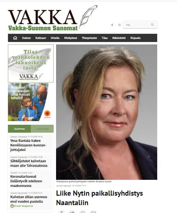 Uutinen Vakka-Suomen Sanomissa kertoo: