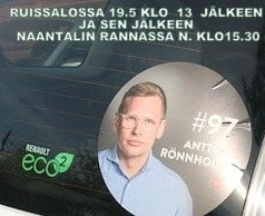Tänään on aktiivinen päivä: EU vaalit näkyvät ja kuuluvat. Turun kunnallisjärjestö järjestää Ruissalon kansanpuistossa koko perheen tilaisuuden klo 13 alkaen ja sitten Antton on luvannut kaartaa Naantalin kautta n. klo 15.30 ja sieltä edelleen kohti hallitusneuvotteluja.