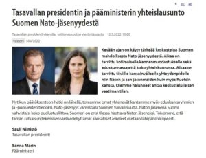 Suomessa ja maailmalla seurataan Suomen ulkopolitiikan käännettä. Lännessä positiivista. idästä ei vielä tiedetä: Pelätään pahaa mutta toivotaan kohtuutta peiliin katsojilta.