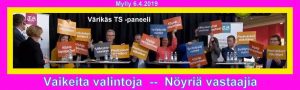 Päätoimittajat pakottivat valitsemaan viidestä hyvästä vain kaksi. Ja tältä se näytti. Annikka Saarikko yritti lievää protestointia, mutta alistuivat. Lopulta voi sanoa, että se toi esille ihan mukavasti erilaisia perusteluja. Eli asiasta kiinnostunut pääsi vähän vastaajien sisälle vähintään arvioimaan taktiikan ja todellisuuden eroa.