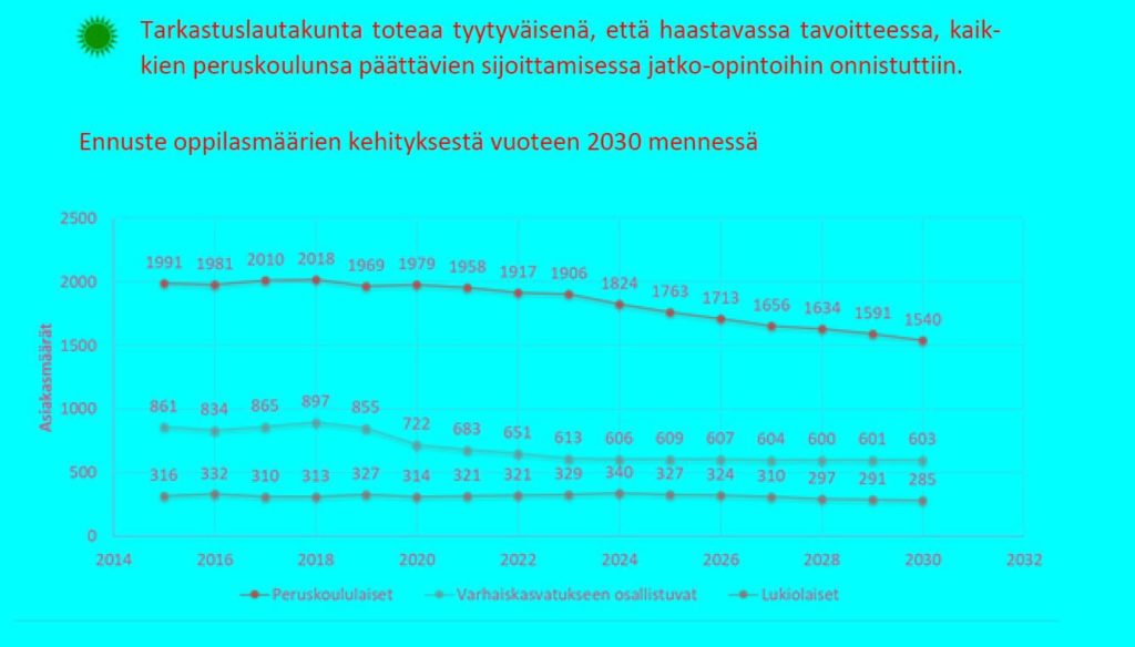 Sirpa kertoi ikävän uutisen; ettei tarkastuslautakunnan kuvaama hyvä tilanne kaikkien pääsystä toiselle asteelle ei tänä vuonna enää toteudu. vrt.. artikkelikuvaa Se on vakava kehitystä. Kiitoksia Sirpa kohdisti henkilökunnalle ja kollegoille.