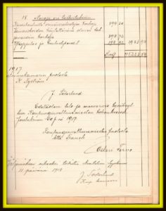 Hyvän joulun toivotukset jo tässä vaiheessa. Ja muistutuksen , että ennen aherrettiin pienempien asioiden kanssa vuoden viimeisille päiville. Vuonna 1917 viimeinen kokous oli 30.12! Yksi allekirjoittajista Oskari Tervo