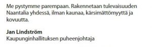 Me pystymme parempaan. Rakennetaan tulevaisuuden Naantalia yhdessä ilman kaunaa, kärsimättömyyttä ja kovuutta