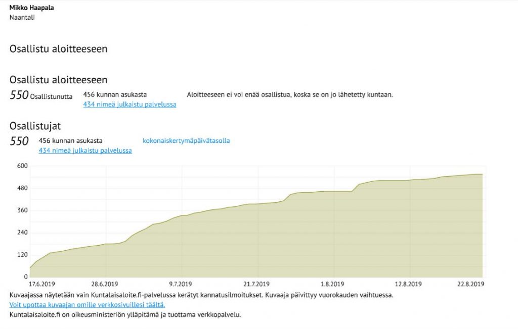 Ani harvoin saa nähdä niin perusteellisesti valmistelua aloitetta, kun Tallinpuistosta tehty on. Oheinen kuvakaappaus osallistujista