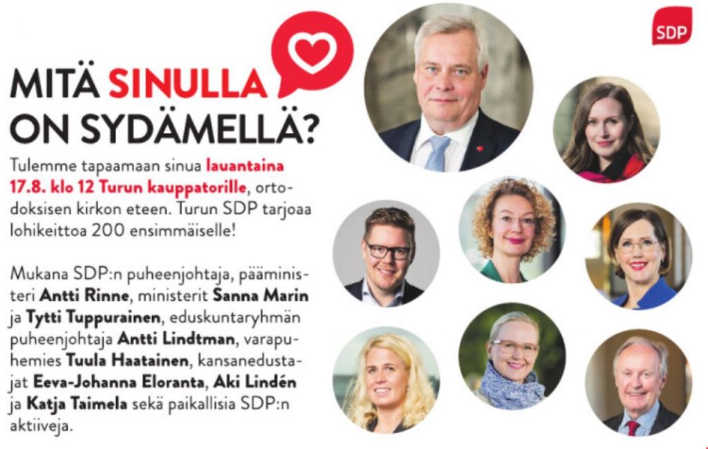 SDP:n 120-vuotisjuhlia vietetään vaatimattomasti remontin alla olevalla torilla. Vanhalla Vanhan Venäjän Kirkkokadulla turkulaisittain Ryssän kirko veires.