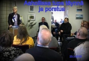 Ja talo pullisteli väkeä. Kyllä siinä kelpasi Laaksosen Leon ja Räikän Harrin hymyillä. Ihmisistä nämä hommat ovat kiinni. Voi tietenkin olla niin, että kuntaliitos innostaa pitäjää korostavaan yhteistoimintaan ja se se vasta onkin hyvää terapiaa.