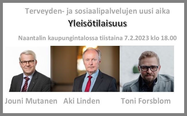 Naantalin Työväenyhdistyksen säätiö ilmoittaa ennakkotietona, että tiistaina 7.2.2023 klo 18.00 alkaen Naantalin kaupungintalolla on yleisötilaisuus sote-asioista.