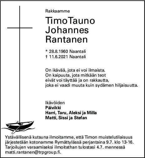 Ystävällisenä kutsuna ilmoitamme, että Timon muistelutilaisuus