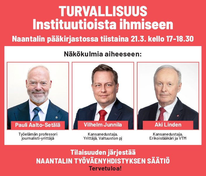 Naantalin Työväenyhdistyksen säätiö järjestää turvallisuusaiheisen keskustelutilaisuuden Naantalin kirjastossa 21.3.2023 klo 17