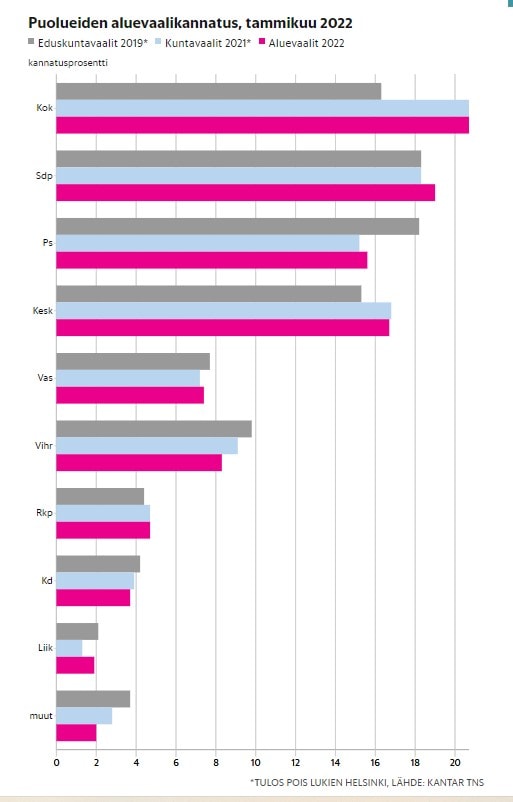 Puoluekannatus on kuten HS:n kuvakaappauksesta näkyy tulossa olisi kuntavaalien toisinto – ihan pientä nousua on SDP:lle tiedossa ehdolla, että äänestämässä käydään ensi sunnuntaina