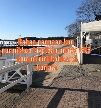 korjata ja täyttää, ilman budjetissa määrättyjä kohderahoja. Eikä kai niitä kohderahoja kansankäytäville riitäkään, kun valtuutettujen saaristoalueet, vanha kaupunki ja (K-)kauppojen