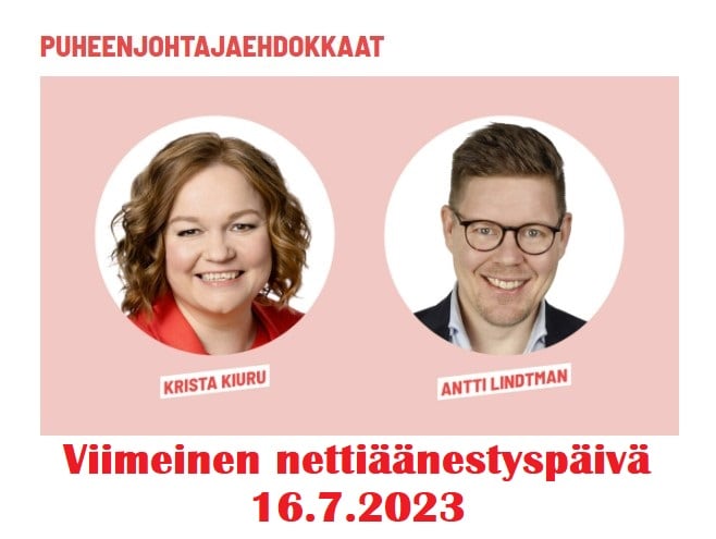 Hyvä SDP:n jäsen, nyt on viimeiset hetket aikaa äänestää neuvoa-antavassa jäsenäänestyksessä puolueenpuheenjohtajasta. Verkkoäänestys päättyy sunnuntaina 16.7.2023