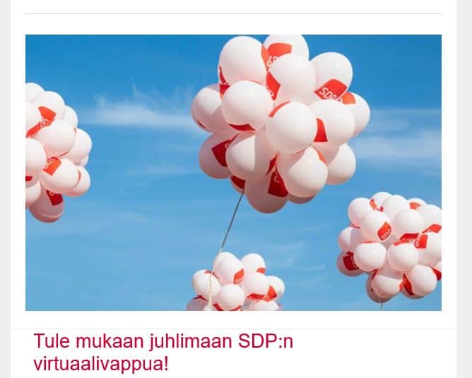 Tervetuloa mukaan SDP:n virtuaalivappulähetykseen perjantaina 1.5. klo 14 alkaen!