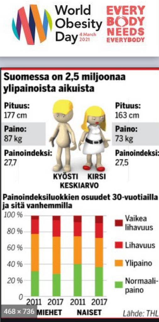 Tämä on suuri yhteiskunnallinen ja taloudellinen haaste. Siitä enemmän blogi palstalla, jossa referoidaan tutkimuststa lihavuuden covid 19 kuolemien keksinäisestä yhteydestä.
