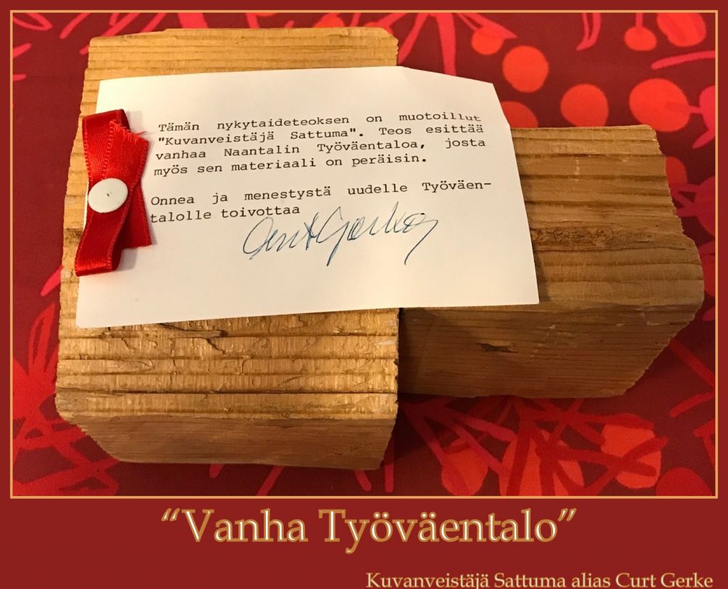 Curre yhdessä Raino Puottulan kanssa lahjoittivat teoksen 20 vuotta sitten Kaivokatu 20 kunnostustyön jälkeisiin avajaisiin.