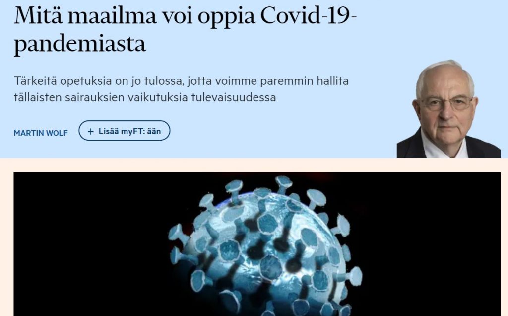 Tärkeä askel on kaikkien maiden, myös Yhdysvaltojen, liittyminen Covax- aloitteeseen, joka tarjoaa rokotteita maailmanlaajuisesti. Globaalit haasteet edellyttävät globaaleja ratkaisuja. Covid-19 on ollut paljon tuhoisampi taloudellinen shokki kuin ekonomistit odottivat. Tämä on valtava oppitunti. Edelleen virulentti tauti on täysin mahdollinen. Seuraavan kerran meidän täytyy tukahduttaa uusi tauti paljon nopeammin. Monet arvostavat nyt vapautta. Mutta ihmisten turvallisuuden tulisi pysyä politiikan ylimpänä lakina nyt ja ikuisesti. martin.wolf@ft.com