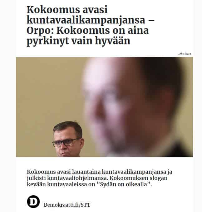 Kokoomuksen kampanjan avaus sai fiksun kommentoinnin Demokraatti-lehdessä. Kuva kertoo, mistä on kysymys: Kokoomus säikkyy haamua, joka on ihan Halla-ahon näköinen.