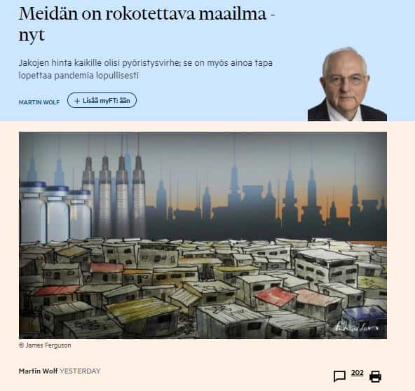 Martin Wolf tiivistää tilanteen kolumnsiissa. Rokottakaa koko mailma – nyt.