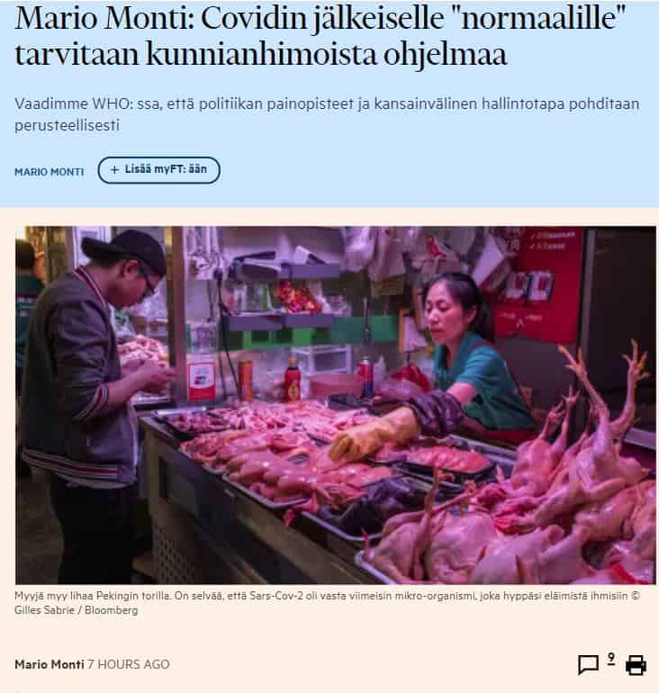 Covid 19 jälkeine aika ei ole paluuta entiseen eikä sen pitäisikään olla, vaan johonkin parempaan olisi pystyttävä. Tätä viisaat pohtivat ja tässä alla referoidaan FT:n kirjoitusta, jonnka on tehnyt  Marion Monti , Italian entinen pääministeri, on WHO: n yleiseurooppalaisen terveys- ja kestävän kehityksen komission puheenjohtaja. Saman ryhmän jäsenenä on Tarja Halonen Suomesta.