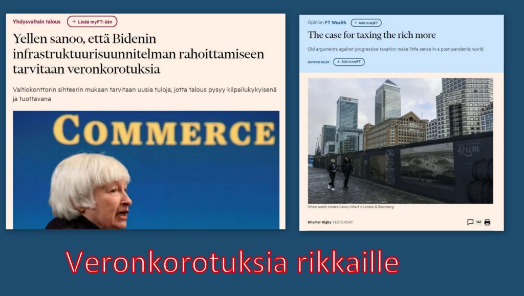 Mutta viimeisten vuosien kehitys on suosinut läntisten maiden USA & Iso Britannian mallin mukaisesti rikkaita ja erityisesti varallisuutta ja pääomatuloja on suosittu: