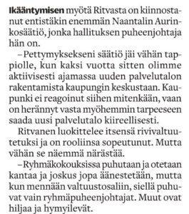 ”Aurinkosäätiön hallituksen puheenjohtaja Pekka Ritvanen, kok rohkeni kertoa, että Aurinkosäätiön vuonna  2019 tekemän rakentamisaloitteen puolesta ei ole tehty kaupungin toimesta mitään.”