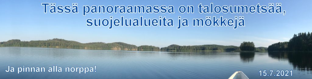 Panoraamassa näen joka puolella Suomen vihreää kultaa. Tasaisen vaihteleva, mutta harmoninen on näky. Tiedän, että rannoilla on kymmeniä mökkejä ja että suojelukohde mahtuu kuvaan kuin myös eri ikäiset hakkuuaukot. Etelä Savon alueilta ovat peräisin laatumäntyjen siemenet ja täällä puuta korjataan aktiivisesti jotain 100.000 m3 joka viikko. Koneet toivat tehokkaasti ; läheisellä kankaalla näin kun korjuu- ja keräilykoneet päivässä kasasivat harvennushakkuissa 1.000 m3 . Tukkirekalla on pituutta parhaimmillaan 24 metriä ja kuorma painaa 70 tonnia. Tuukkien nippu-uitosta muodostuu kilometrin pitkä lautta.