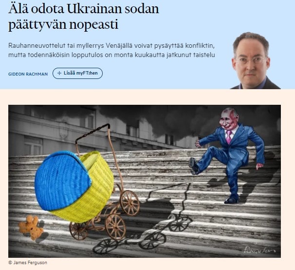 Gideon Rachman on yksi kuuluisimmista tavallisesti asioista hyvin perillä  olevista tahoista, joka kirjoittaa FT:ssä  omissa nimissään kolumneja , joita kannattaa lukea: https://www.ft.com/content/63fc662c-098d-4263-b69b-34d55c9f5e0a