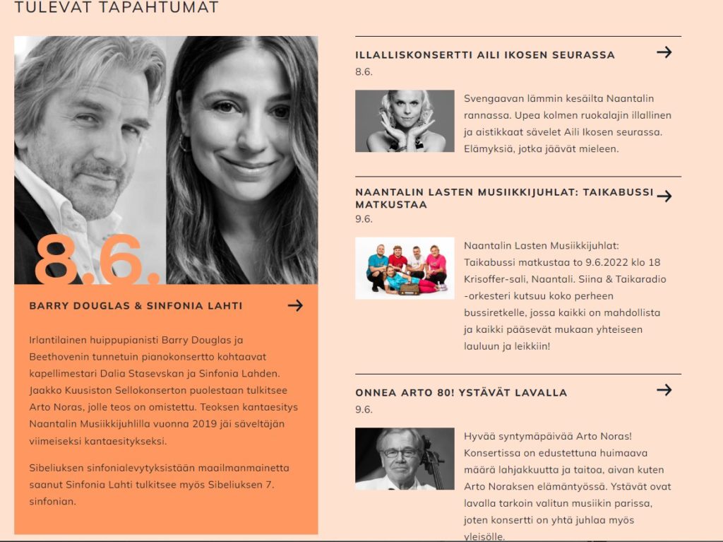 Kannattaa tutustua https://naantalinmusiikkijuhlat.fi/meista/naantalin-musiikkijuhlasaatio/