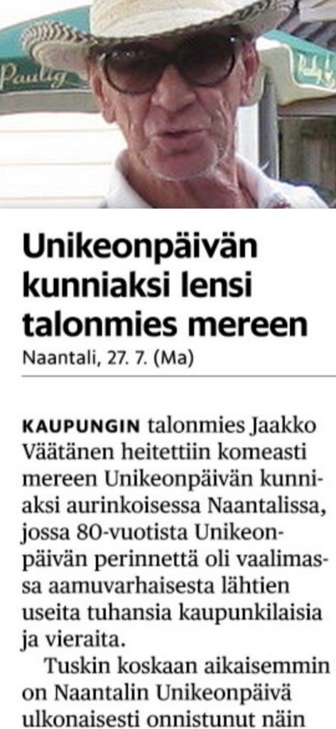 Naantalissa juhlittiin 60. Unikeonpäiviä eilen . Tänään HS:n palstalla 50 vuotta sitten oli tänään pieni artikkeli, jossa kerrottiin ennätysyleisöstä, kun Väätäsen Jaskan perässä kulkueena marssittiin Kalevanniemeen siksi, että rannan paikat olivat käyneet ahtaiksi. Tuolloin Naantalin vetovoimaa nostatettiin paikallisen matkailulautakunnan johdolla. Matkailulautakunta oli perinyt tehtävän Kylpylaitokselta ja Merisalin pitäjältä Virralta.