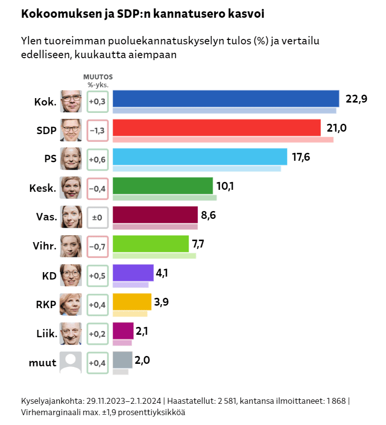 Mielestäni tämä on harhainen johtopäätös: Hallituspuolueiden kannatus perustuu joulunaikaan ja venäjän rajatapahtumiin.