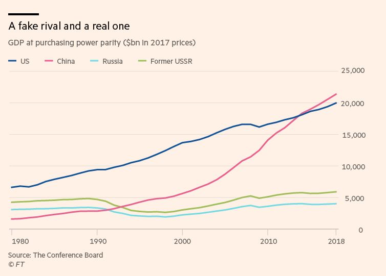 Gafiikka selittää, että entinen aika ei palaa eikä entiset voimasuhteet ole voimassa. Neuvostoliitto tukehtui sotilasmenoihin ja järjestelmän kyvöttömyyteen toimia avoimilla markkinoilla. Kiinalle se on taas menestyksen salaisuus. Martin Wolfin päätelmä: