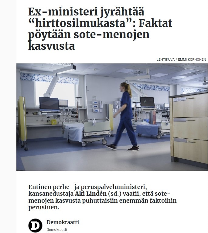 Ex-ministeri jyrähtää “hirttosilmukasta”: Faktat pöytään sote-menojen kasvusta | Demokraatti.fi