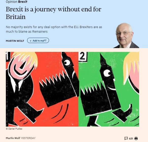 Martin Wolf kirjoittaa FT:ssä Brexitin loputtomasta matkasta aloittamalla lainauksella: