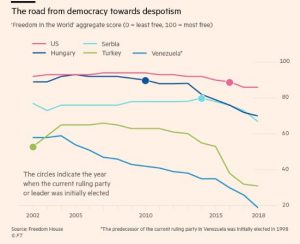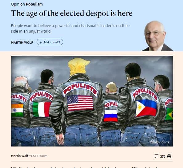 Tämä aikamme kuva. Martin Wolf näkee, että jopa maissa esimerkiksi Kiinassa, jossa vapaudet ovat olleet rajoitetut ja joissa kansalla ei ole valintaan kuin välillistä vaikutusta, voi vapaus olla vähemmän uhattuna kuin vaaleilla valittujen despoottien hallinnassa.