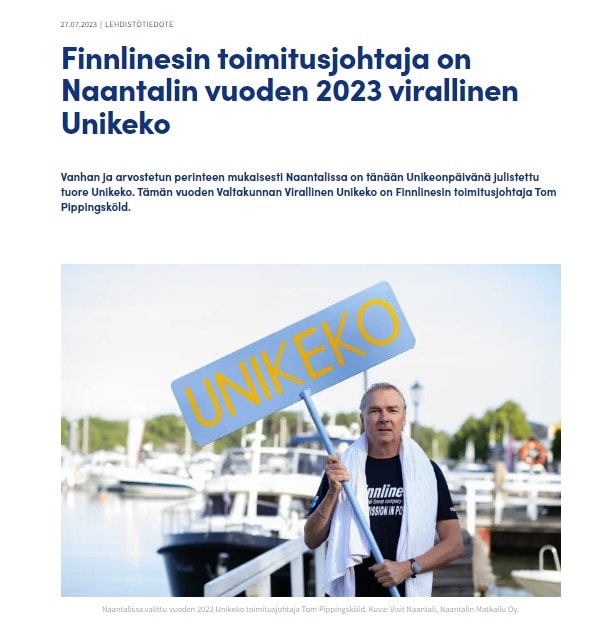 Finnlines tiedotti näkyvästi kuten artikkelikuva kertoo ja tämä linkki varmistaa