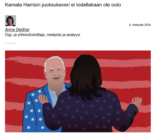 Sen sijaan meidän WACHINGTONIN SUURLÄHETTTILÄS Mikko Hautala Niinistön entinen kansliapäällikkö kertoo, ettei Kamala Harrisin ulkopolitiikan linjasta tiedetä mitään.