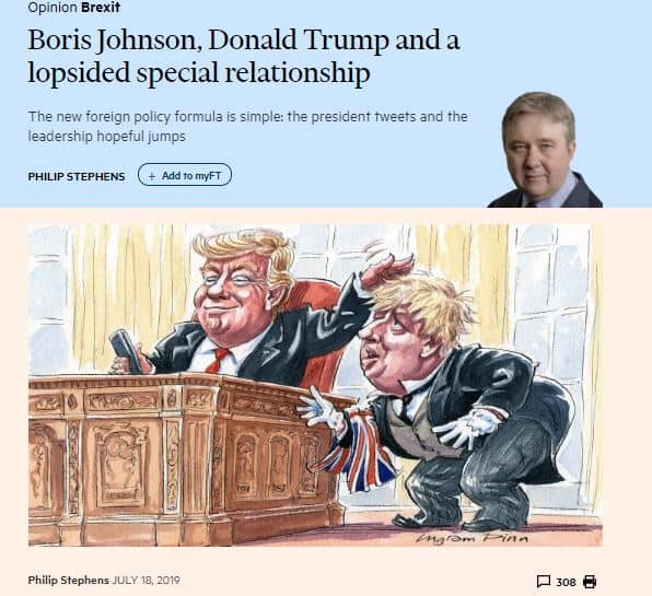 Washingtonissa Britannian vaikutus mitataan sen mukaan, kuinka hyödyllinen liittolainen se voi olla. Ironia on, että Brexit jättää vähemmän mahdollisuuksia tarjota apua. Se ei voi enää puhua Yhdysvaltojen puolesta Euroopan neuvostoissa. Tory-pääministeri Harold Macmillan keksi , että Iso-Britannia voisi palvella Ameriikkaa kuten viisaat kreikkalaiset tekivät Rooman valtakunnassa. Herra Johnsonille elämä on yksinkertaisempaa. Ajattele yksinkertaisesti: palvelija ja isäntä . philip.stephen, FT