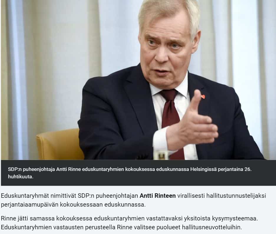 Tänään Antti vaikutti rennolta ja hyväntuuliselta, mutta jämptiltä.; tämä homma on hanskassa. Asiakokonaisuuksien käsittely sujuu sekä selkeästi että nopeasti. Tämä ei tietenkään ole riittävä edellytys, että Suomessa olisi hallitus toukokuun lopulla. Tämä takaa sen, että se ei tule olemaan Antti Rinteestä kiinni.