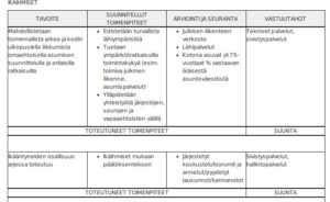 Johtopäätös on, että tärkeintä olisi ylläpitää hyvää kuntoa ja mieltä niin, että omaehtoinen elämä olisi mahdollisimman monelle mahdollista. Hyvinvointisuunnitelmassa esitetään oheisia toimenpiteitä’.