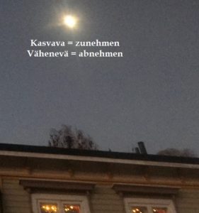 Kun kuu kasvaa sen pyöreä kaari oikealle kun z kirjaimessa kun se vähenne se on kuin a